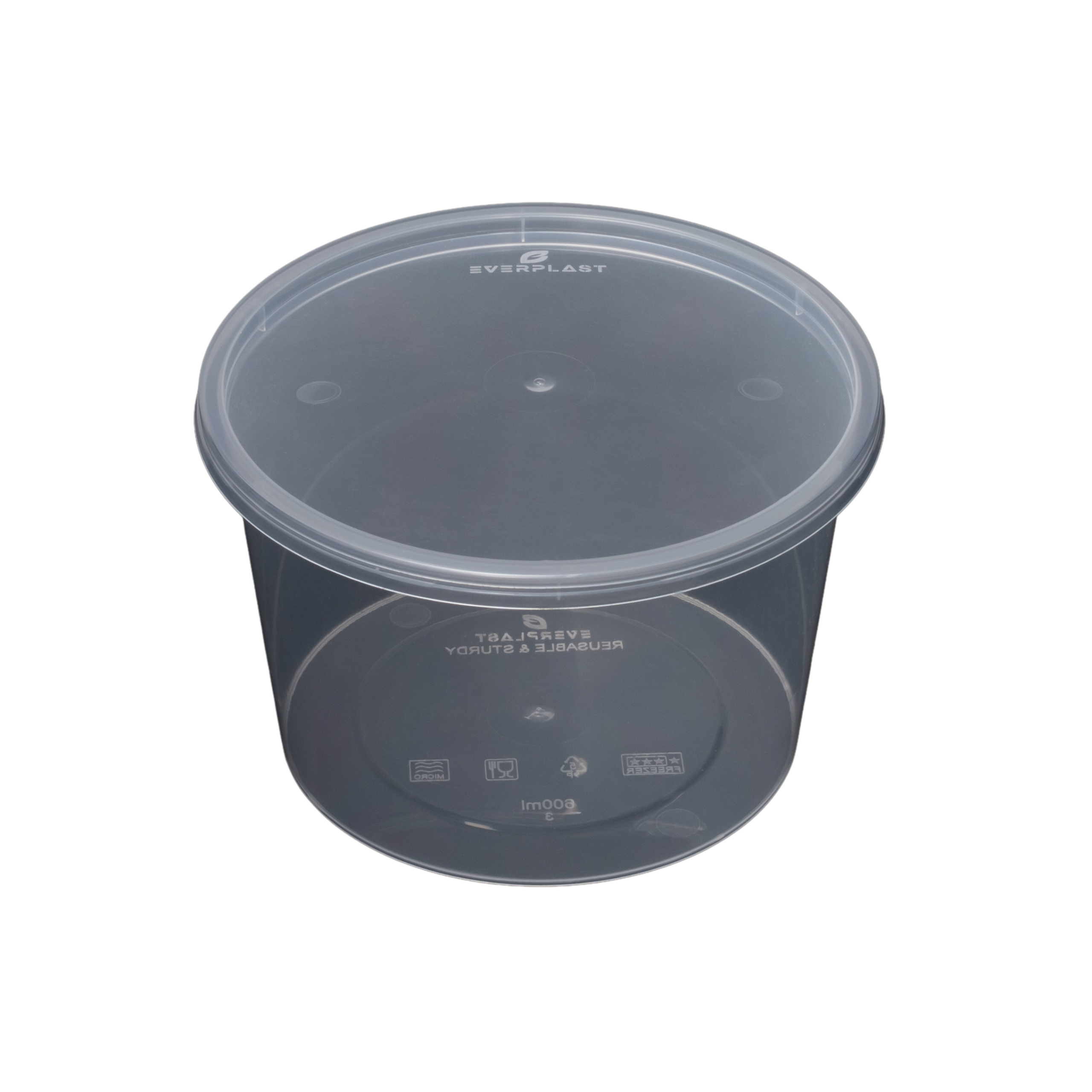 The 600 ml EVERPLAST round container offers ample space for meals, salads, or bulk food storage. Microwave-safe, freezer-safe, and dishwasher-safe construction ensures daily convenience. The transparent body provides quick visibility, while the strong lid keeps food fresh and secure.
